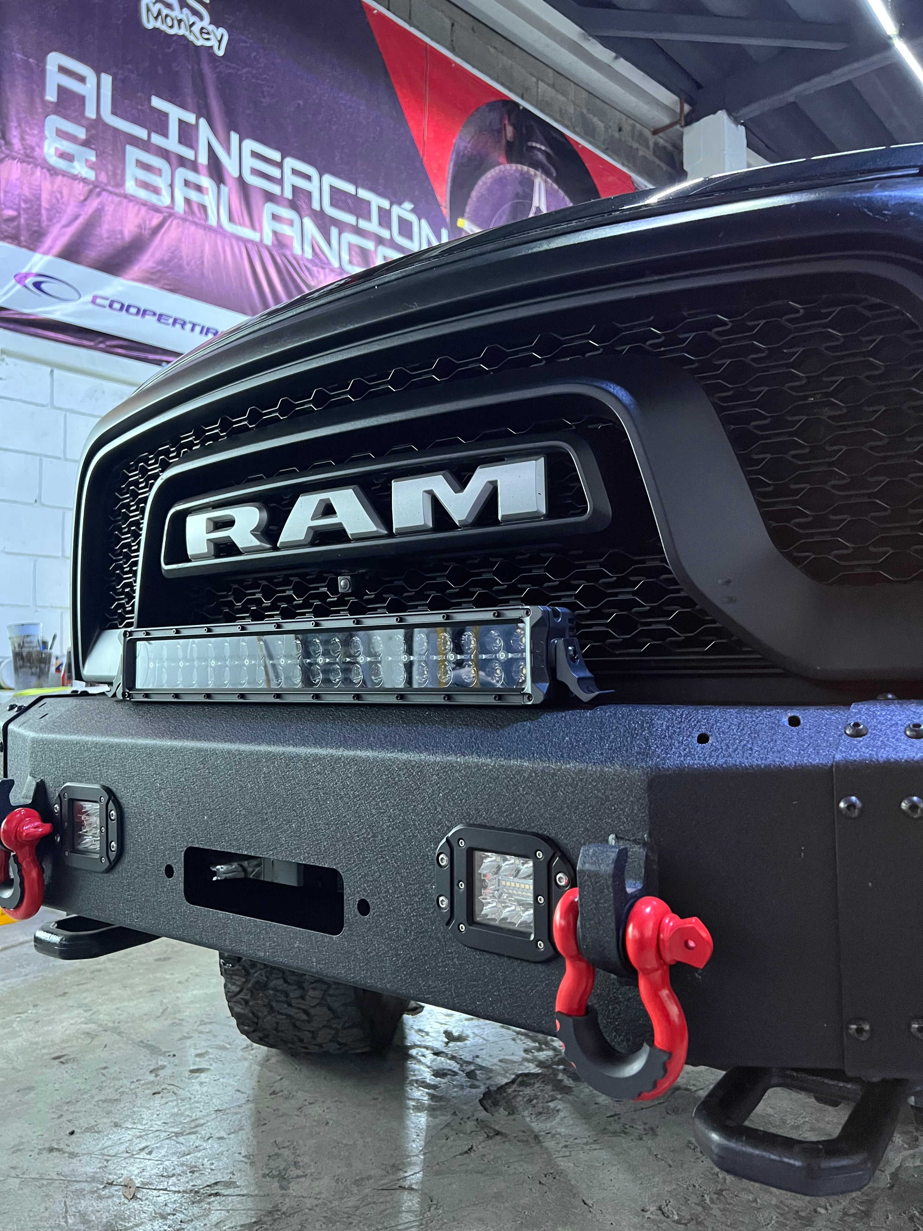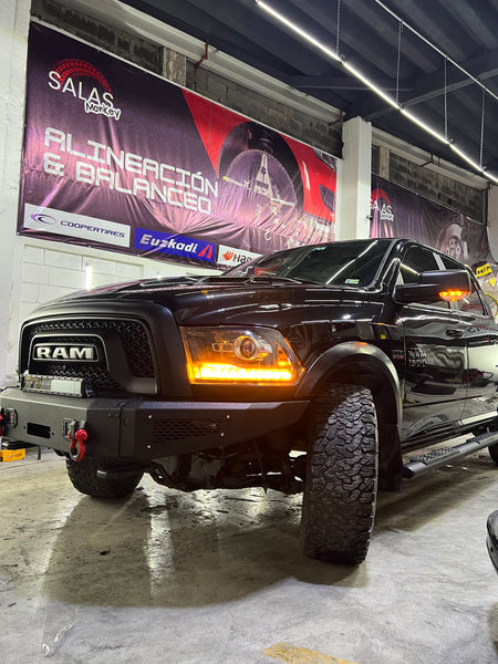 • Defensa frontal personalizada con ganchos de arrastre y barra LED integrada